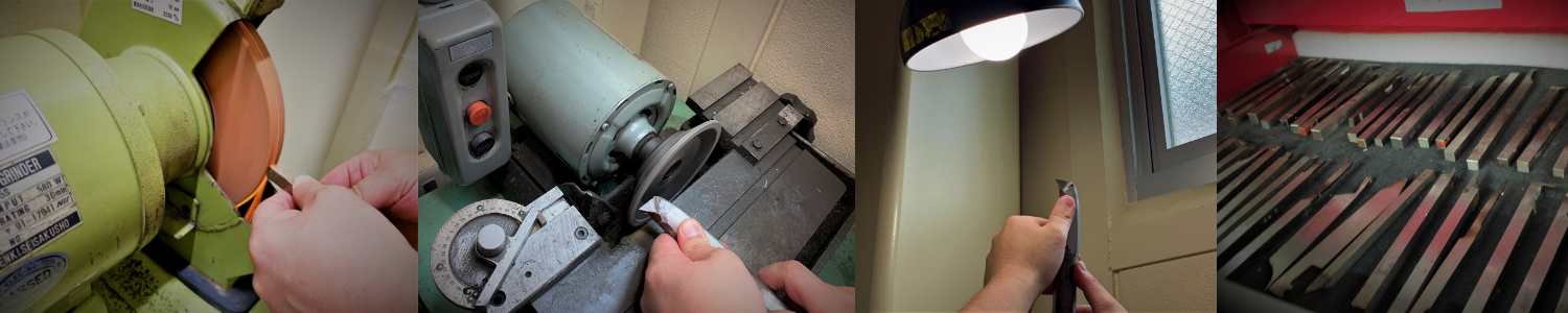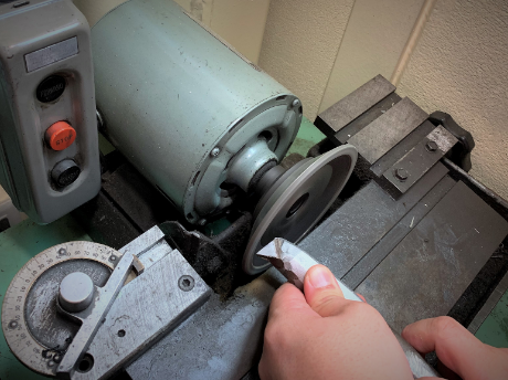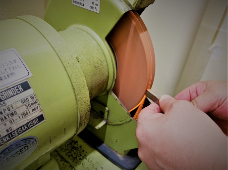 刃具を研いでこしらえる熟練の技術は 料理人がつかう包丁のように 刃先の角度と切れ味を確かめながら