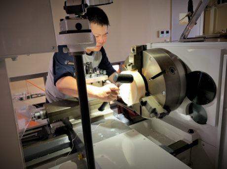 削りこみの量と深さ、正しい削り音、削った粉の色や枯れぐあい、つぎつぎと訪れる情報をつかんで機械を運転していきます。